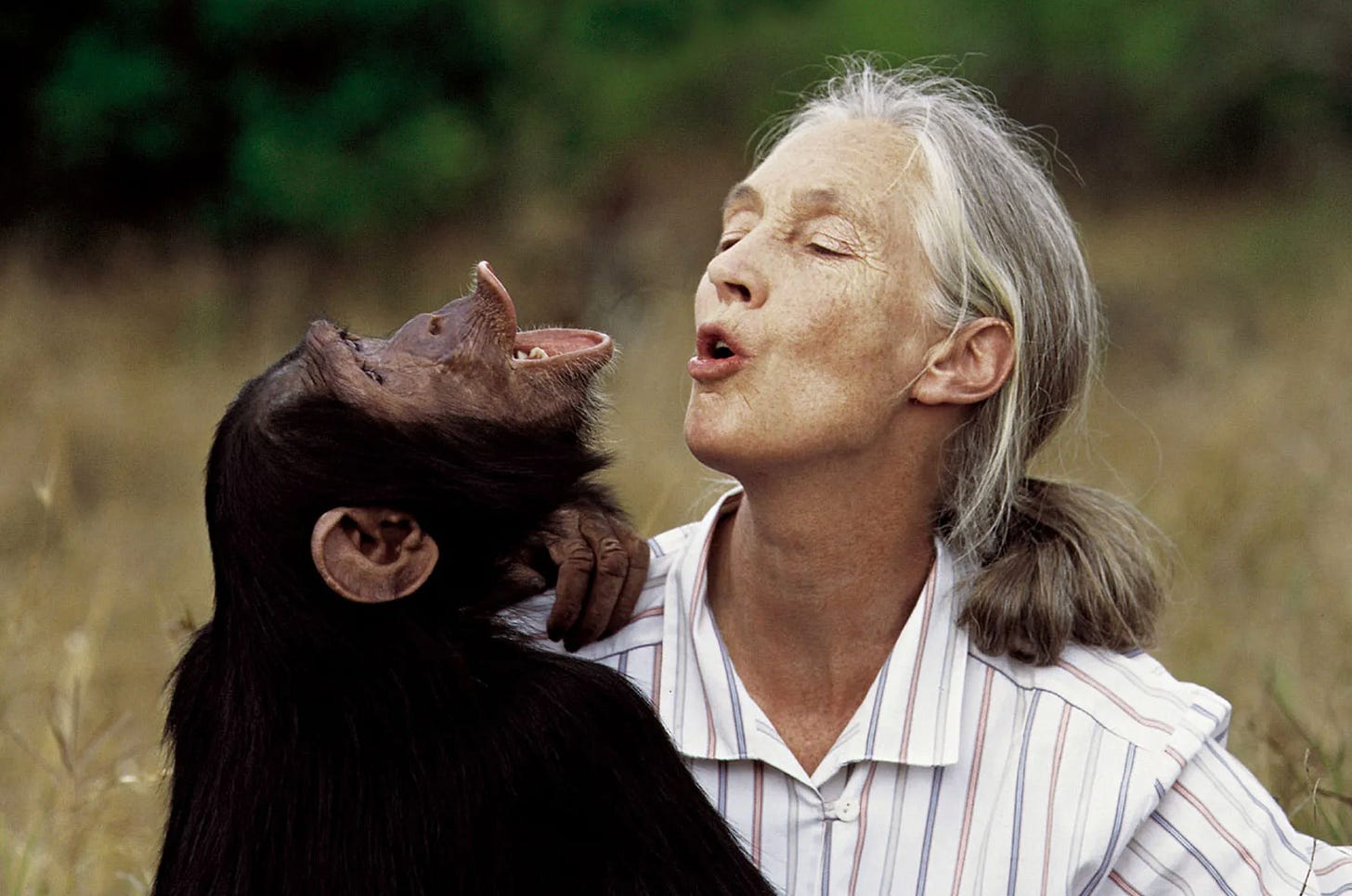In case you live under a rock like my husband, Jane Goodall was the first person to ever seriously study chimpanzee behavior, which basically launched the entire field of primatology (no big deal). She was the first to discover that other nonhuman primates are tool-users, have emotional intelligence, and are far more like us than we ever imagined. The famous anthropologist Louis Leakey said of her findings, “We must now either redefine man, redefine tool, or accept chimpanzees as human.”